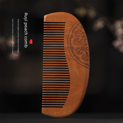創意桃木DIY木工藝家用國潮古風女木梳祥雲圖騰原木節日禮品專用