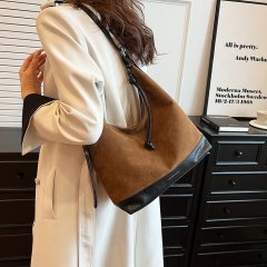 $ 7.50 Sold 3白溝箱包批發手提水桶包女2023新款帆布撞色抽帶高級感單肩斜挎包