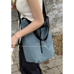$ 12.80 Sold 5包包女2024新款帆布單肩手提包韓系高級感百搭斜跨水桶包外貿跨境
