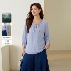 Fiber showcases large-size women's elegant temperament and gentle Lacele's seven-point sleeve button-up shirt fat mm2024 autumn new style