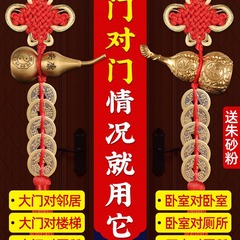 Five Emperors Coins Door-to-Door Genuine Copper Gourd Auspicious Chinese Knot Pendant Open Design with Cinnabar Pure Brass Threshold Coin