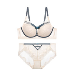 New European and American sexy ultra-thin lace underwear fashion letter shoulder strap big chest small gathering bra set bra