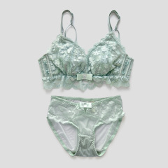 長期款日系水溶刺繡薄罩杯少女可愛聚攏性感內衣套裝文胸套裝大碼