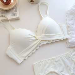 New French satin lace spliced underwear sexy back style bra gathering smooth lace bra set