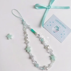 自製夏日薄荷星星手機掛繩手工diy串珠ccd鏈條相機清新掛飾ins風