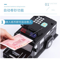 Automatic money-saving bank with cash truck, fingerprint password, creative cross-border savings canister, battery-operated, black and white color