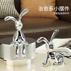 Modern light luxury electroplated silver rabbit ornament entrance wine cabinet TV cabinet living room home divider room soft decoration item