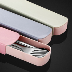 Children's student portable tableware set stainless steel chopsticks spoon office worker spoon fork outdoor convenient three-piece set