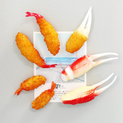 Factory Simulation Tempura Shrimp Refrigerator Magnet, Fun Fried Shrimp Balls and Crab Claws Simulation Food Magnetic Refrigerator Magnet