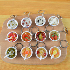 PVC simulated food blue and white porcelain keychain, simulated food toy small bowl backpack hook decoration toy, strong factory