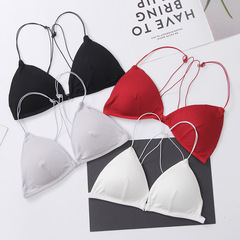 French-style triangular beauty back bra, wrap-style lingerie, women's sexy thin-strap wireless bra with crisscross front closure
